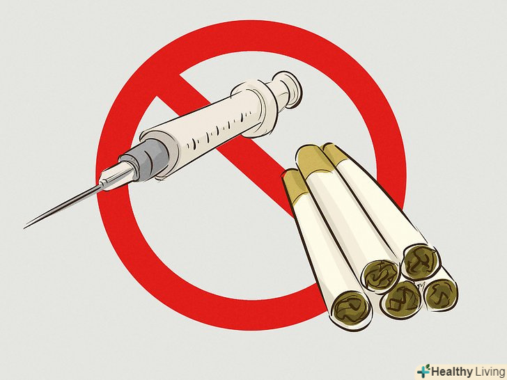 Тримайтеся подалі від усіх заборонених наркотиків.наркотики в будь — якому вигляді-особливо "вуличні" - неймовірно небезпечні для плоду, що розвивається. Вживання рекреаційних наркотиків майже на 100 % гарантує, що у дитини буде вроджена вада або відхилення, так як вони значно впливають на ваш організм і функції мозку, а отже, і на вашу дитину. До того ж матері, які мають залежність від наркотиків і продовжують вживати їх під час вагітності, можуть дійсно передати свою залежність своїй дитині. Тоді новонароджений стає наркозалежним і також страждає синдромом відміни, як і дорослий.[25]- Якщо ви страждаєте від наркотичної залежності, то дізнайтеся про програми позбавлення від залежності, зверніться до нарколога за консультацією.
