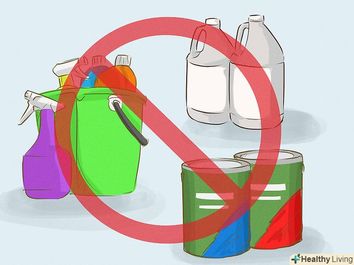 Уникайте впливу токсинів навколишнього середовища.Контакт з певними хімікатами і токсинами особливо небезпечний для вагітних жінок, навіть якщо вони не становлять небезпеки для невагітних. Чистячі розчинники, сильні хімікати, важкі метали (як ртуть і свинець) і деякі біологічні речовини (як азбест) пов'язані з ускладненнями і вродженими вадами.[27]- Якщо ви працюєте або проживаєте в місці, де є ймовірність контакту з такими токсинами, зробіть все можливе, щоб запобігти цьому назавжди. При необхідності змініть спосіб життя.