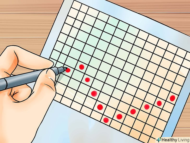 Крім вимірювання температури та аналізу слизу, ви можете використовувати календар, щоб відстежувати свій цикл.у більшості жінок з регулярним циклом, він триває від 26 до 32 днів, хоча є жінки, у яких цикл коротше або довше. Перший день вашого циклу-це перший день менструації. Останній день менструації є початком наступного циклу.[9]- У багатьох жінок спостерігається незначна зміна менструального циклу з місяця в місяць. Стрес, хвороба, втрата або набір ваги та інші фактори можуть вплинути на цикл.