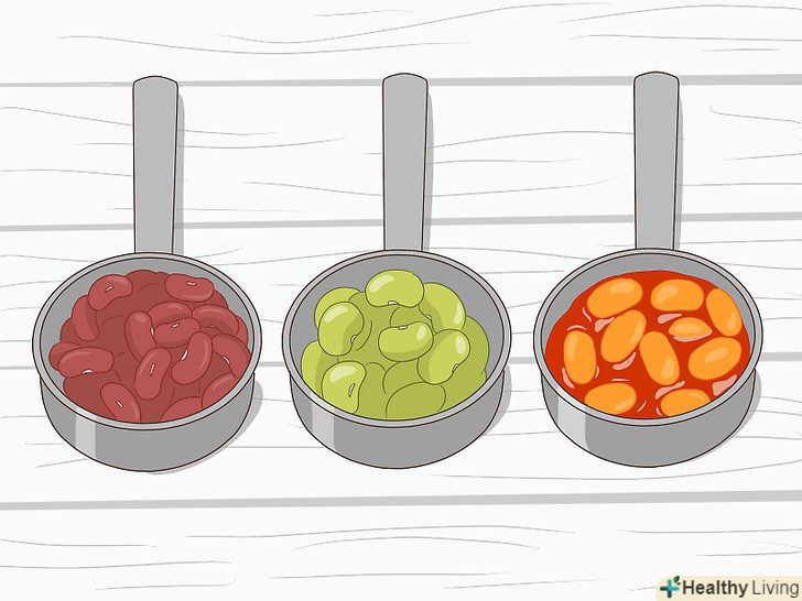 Їжте більше бобових.бобові (зокрема, квасоля) — це відмінне джерело клітковини. Всього 120 г приготовленої квасолі (або Лімської квасолі) містить 6 г клітковини, а в інших бобових міститься близько 5 г клітковини.[12]