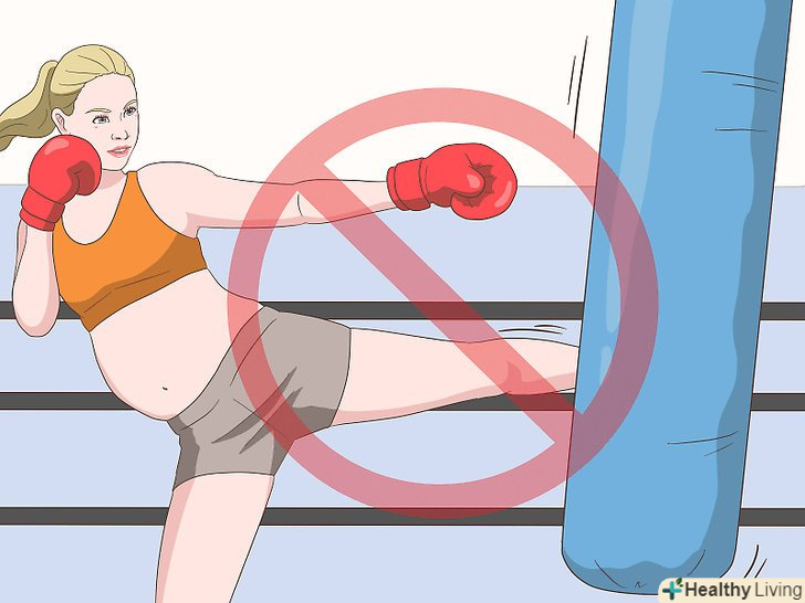 Не займайтеся активними видами спорту.Само собою зрозуміло, що ви не станете грати в футбол в період вагітності. Однак варто пам'ятати про те, що вагітним також не рекомендується займатися дзюдо, кікбоксингом, стрибками на батуті — так ви ризикуєте нашкодити малюкові.[18]