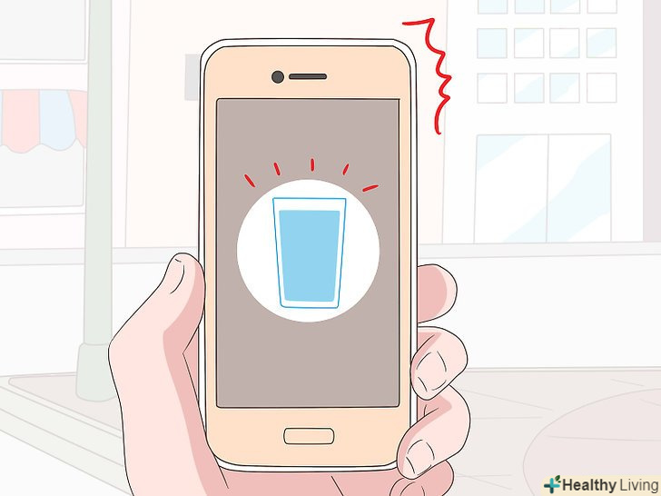 Ставте собі нагадування.якщо ви постійно забуваєте пити воду, встановіть на своєму телефоні або комп'ютері нагадування. Наприклад, можна ставити нагадування на кожну годину-таким чином, телефон або комп'ютер буде нагадувати вам про те, що пора випити трохи води.[7]