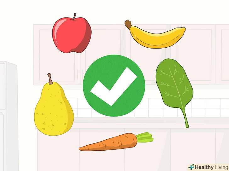 Включіть в свій раціон харчування більше фруктів і овочів. Фрукти та овочі є природним джерелом клітковини. Наприклад, 240 г приготованого шпинату містить 4 г клітковини, а в одній моркві середнього розміру міститься 2 г клітковини. Для порівняння в одній цілій груші міститься 6 г клітковини, а в яблуці — 4 г.[9]