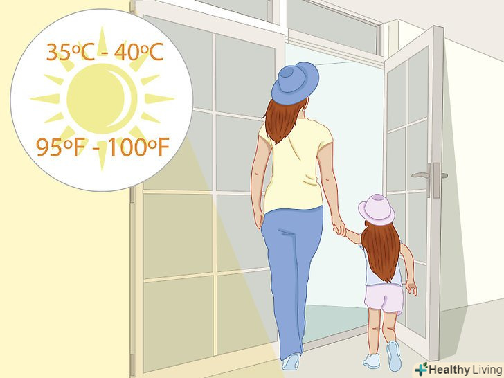 - Всякий раз, коли намічається небезпечне для здоров'я людини підвищення температури, метеорологічна служба озвучує попередження і робить оголошення про майбутню надмірно високій температурі. Залишайте дітей вдома на цей період, якщо ви живете в зоні ризику.[7]