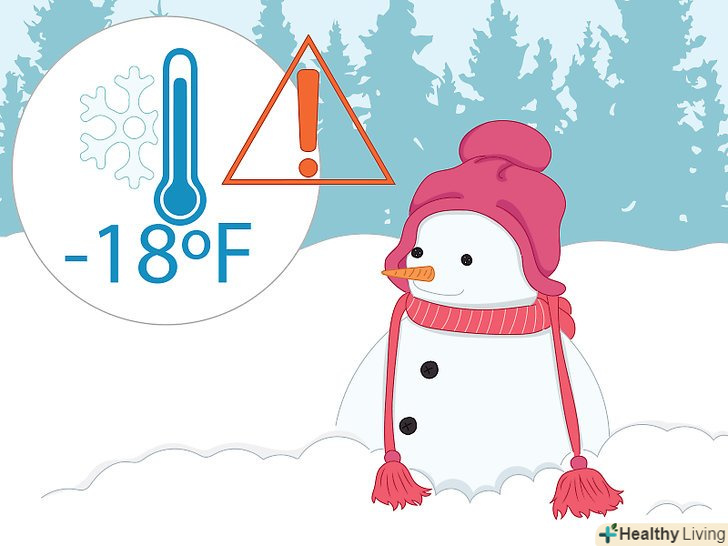 У сильні холоди залишайте дітей вдома.суворий мороз може привести до гіпотермії, коли температура тіла занадто знижується, або навіть до обмороження. Спільнота педіатрів Росії рекомендує взагалі не випускати дітей з дому при температурі нижче-25ºC[1] як би там не було, це є абсолютною межею температури, при якій шкіра починає замерзати протягом всього пари хвилин.- Настійно рекомендується залишатися дітям вдома, коли температура повітря опускається нижче-12ºc.[2] однак навіть якщо температура трохи нижче 0ºC, дітям все одно необхідно заходити додому раз в 20-30 хвилин, щоб зігрітися.[3]