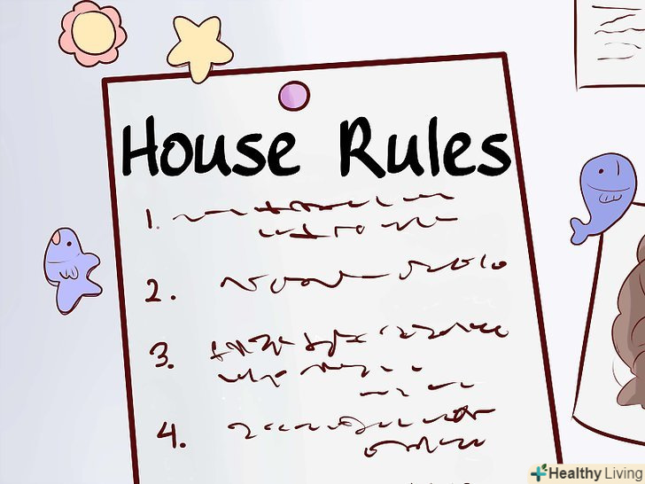 Встановіть межі.Дайте дитині інструкції з приводу сімейного життя: правила, очікування, домашні обов'язки і так далі.- Дайте дитині зрозуміти, звідки взялися ці правила. Ви дорослий, і ваше завдання - допомагати іншим стати краще. Правила допомагають зрозуміти, що добре, а що погано. Поясніть дитині, що правила не зобов'язані подобатися, але їм потрібно слідувати.[5]