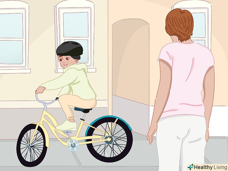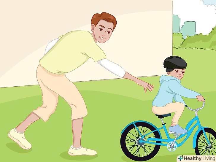 Залишайтеся поруч, поки дитина не навчиться впевнено їздити сам.деяким дітям захочеться розігнатися і залишити вас позаду, а інші вважають за краще відчувати присутність дорослого навіть після того, як вони навчаться їздити самостійно. Будьте для дитини джерелом впевненості, а не третьою ногою, яка тільки заважає.[16]