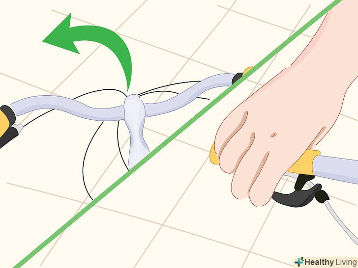 Навчіть дитину правити кермом і зупинятися.покажіть, як можна злегка коригувати рівновагу і повертати кермом, коли дитина стоїть і знаходиться в русі. Якщо він зробить різкий поворот і почне падати, підтримайте його і почніть спочатку.[15]- Також покажіть дитині, як потрібно користуватися ручними і ножними гальмами до початку і під час руху.