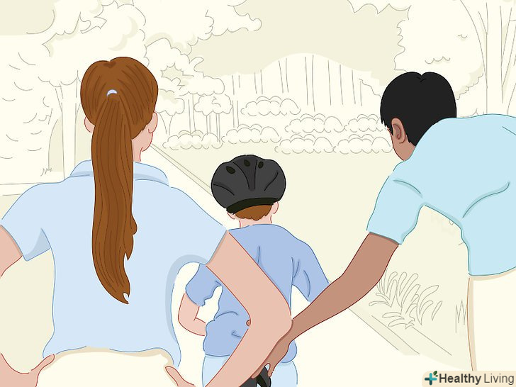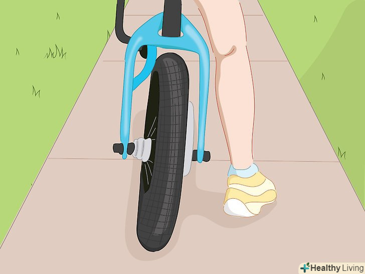 Починайте навчання, коли дитина буде готова фізично і емоційно.деякі діти вже в чотири роки мають досить розвиненими фізичними навичками і можуть утримати рівновагу, але більшість будуть готові вчитися тільки до шести років. Кожна дитина унікальна, тому не поспішайте і дочекайтеся, коли вона зможе зберігати рівновагу без надмірних зусиль.[1]- Деякі діти знаходять необхідну емоційну готовність трохи пізніше, і в цьому немає нічого страшного. Не потрібно поспішати і тиснути на дитину. Говоріть слова заохочення і чекайте слушного моменту.