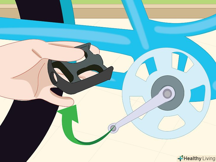 Встановіть педалі і відрегулюйте висоту сидіння.якщо дитина навчилася котитися і тримати рівновагу, відштовхуючись ногами від землі, то прийшов час встановити педалі. Дотримуйтесь вказівок виробника, щоб встановити педалі на місце і підняти сидіння на необхідну висоту. Дитина повинна діставати до землі прямими ногами.[11]