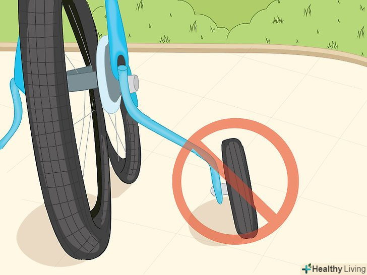 Зніміть або рідко використовуйте бічні навчальні колеса.завдяки навчальним колесам дитина в першу чергу навчиться простим завданням-натискати на педалі, правити кермом і гальмувати. В такому випадку найважча частина (тримати рівновагу) буде чекати його в найостаннішу чергу.[4]- Якщо спочатку навчити дитину тримати рівновагу, то інші завдання здадуться йому нікчемною справою.