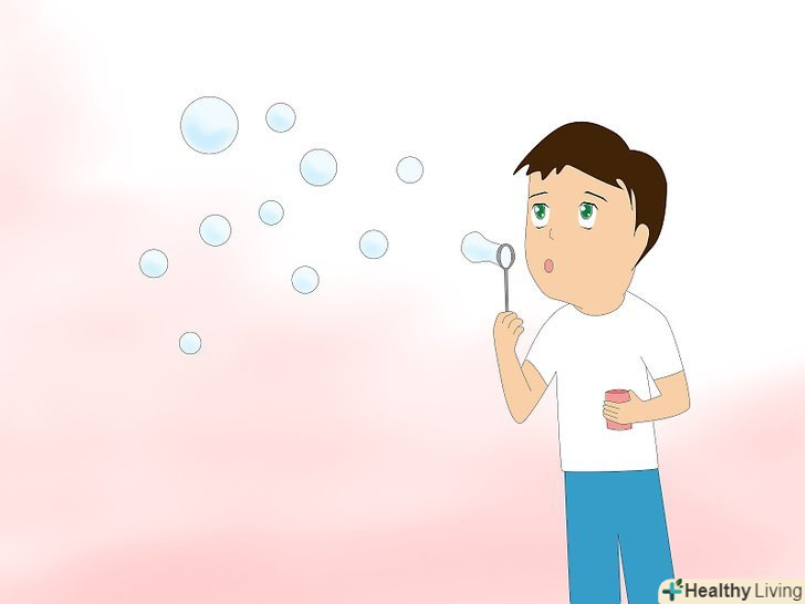 Попускайте мильні бульбашки.змішайте два літри теплої води з 1/4 склянки засобу для миття посуду, додайте 1 ст. л. гліцерину і потім використовуйте будь-яке пристосування, щоб пускати мильні бульбашки. Перетворіть свій двір на веселий повітряний карнавал. Надувайте Великі красиві бульбашки.