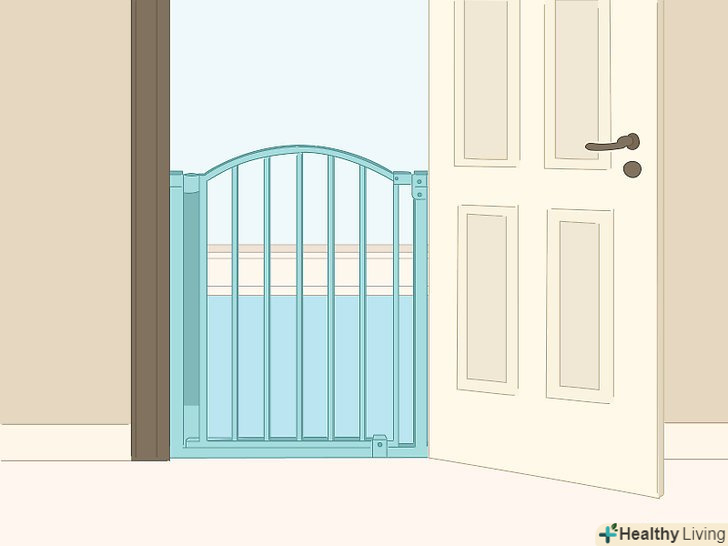 Поставте дитячий бар'єр на дверний проріз.першою думкою може бути закрити двері в дитячу кімнату. Однак закриті двері можуть перешкодити їм покликати вас, якщо знадобиться. Замість цього розгляньте варіант установки високого дитячого бар'єру, так щоб вам була видна кімната і ви швидко могли підійти до дітей в разі необхідності.