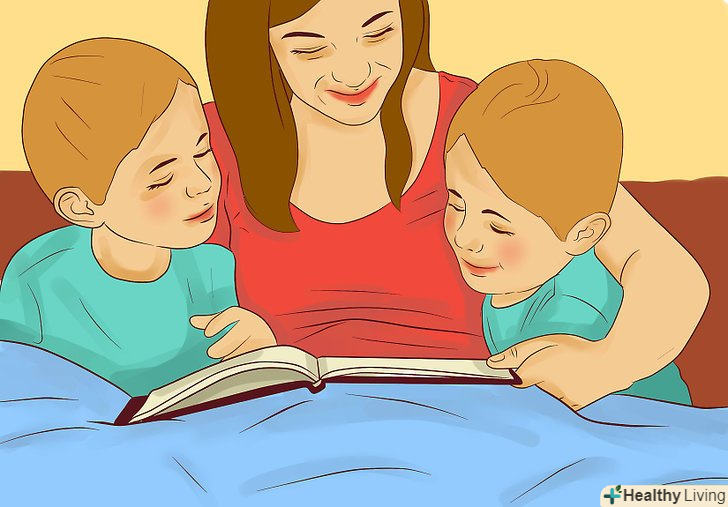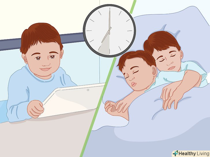 Залишайте дітей в кімнаті щовечора в один і той же час.ще один із прийомів встановлення щоденного режиму-намагатися залишати їх в кімнаті щовечора в один і той же час. Така звичка допоможе дітям вчасно усвідомлювати, що прийшла пора спати.- Ще раз, скажіть їм, що будете поруч, але при цьому їм потрібно постаратися заснути.