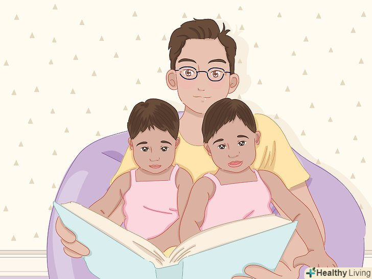 Намагайтеся укладати двійнят спати разом.деякі малюки добре сплять разом в одному ліжку, незважаючи на те що можуть розмовляти і грати, поки не заснуть. Можна спробувати укладати їх в одне ліжко або в різні – просто перевірте, що краще працює у вашому випадку.- Один з мінусів укладання їх в різні ліжку полягає в тому, що вони можуть довго переглядатися і від цього засипати будуть довше.
