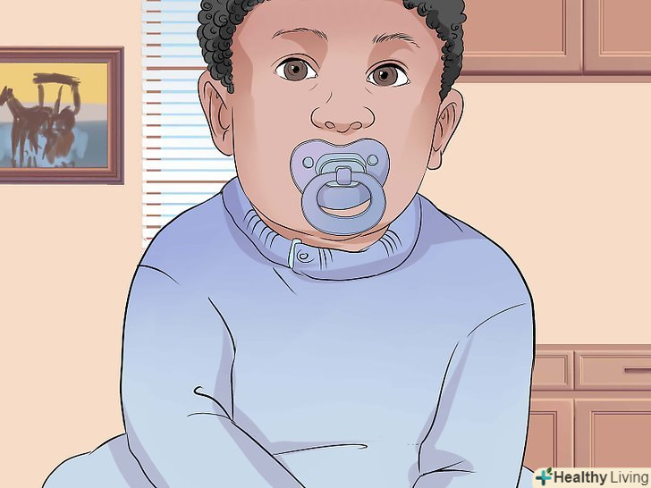 Дайте малюкові соску.соска дійсно може допомогти дитині заснути. З нею ви зможете відмовитися від годування грудьми перед сном. Дослідження показали, що соска під час сну допомагає знизити ризик синдрому раптової дитячої смерті (СРДС).[45]