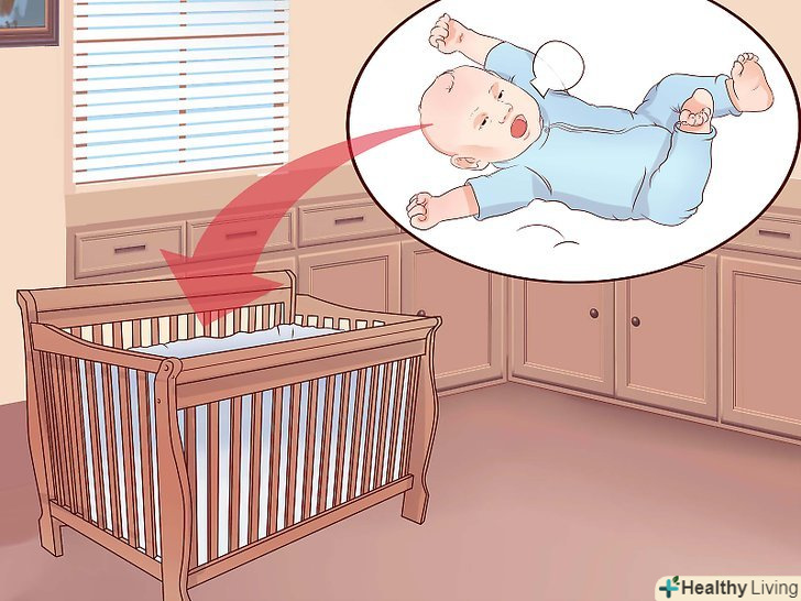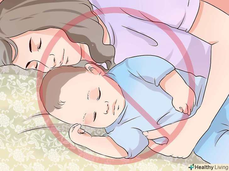 Не кладіть дитину спати поруч з собою.бажання вкласти дитину спати поруч з собою може заподіяти в подальшому незручності, тому подібного варто уникати. Так він не тільки буде вимагати груди перед сном, але і зовсім може перестати спати в ліжечку.[48]- Дослідження показали, що спільний сон підвищує ризик СРДС, здавлювання або удушення.[49]