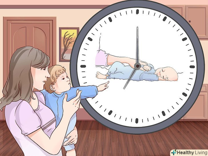 Встановіть чіткий графік сну.вам необхідно ввести графік щоденних процедур перед сном. Це допоможе дитині поступово розслаблятися і засипати без попереднього годування грудьми.[3]- При встановленні фіксованого часу сну враховуйте денний відпочинок, годування і вік дитини.[4] Не турбуйтеся про те, що режим може збиватися протягом перших двох місяців.