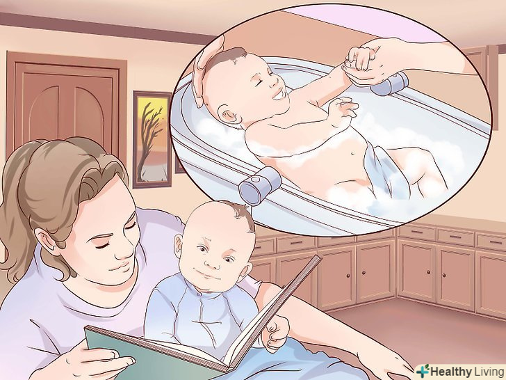 Робіть розслаблюючі процедури перед сном.більшості дітей необхідно трохи часу для поступового переходу в режим сну. Вводьте в ваш режим щоденні розслаблюючі ритуали, які допоможуть дитині заснути без годування грудьми.[7]- Почніть заколисувати дитину, принаймні, за 2 години до відходу до сну.