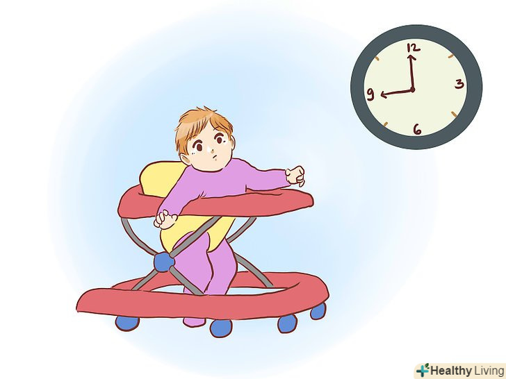 Постарайтеся використовувати ходунки не більше 15 хвилин в день.хоча ходунки можуть бути відмінним інструментом у допомозі вашій дитині ходити, але занадто багато проведеного в них часу загрожує негативними наслідками.- Наприклад, сидіння в ходунках зміцнює тільки м'язи нижньої частини ніг дитини, але ходьба також вимагає сили в верхніх м'язах ніг.