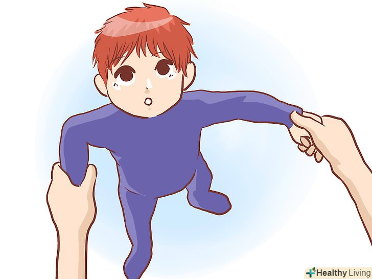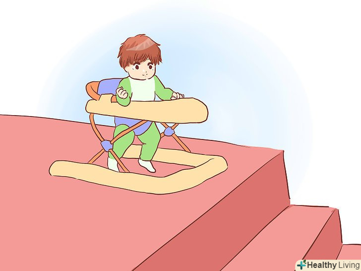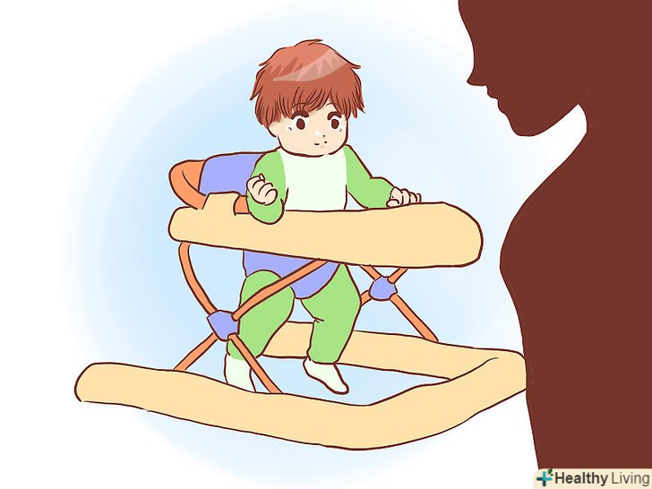 Попрацюйте зі своїм малюком, щоб допомогти йому відчувати себе комфортно в ходунках.більшість дітей досить легко і з готовністю готові стати в ходунки, але деякі можуть вести себе трохи вперто. У таких немовлят просто може бути поганий день, і вони через це не будуть зацікавлені у вивченні чогось нового, або дитина просто боїться цього пристосування.- Якщо дитина дійсно непохитний по відношенню до ходунків, батьки можуть сісти на підлогу біля ходунків і тримати дитину на колінах, щоб він міг побачити і помацати їх.