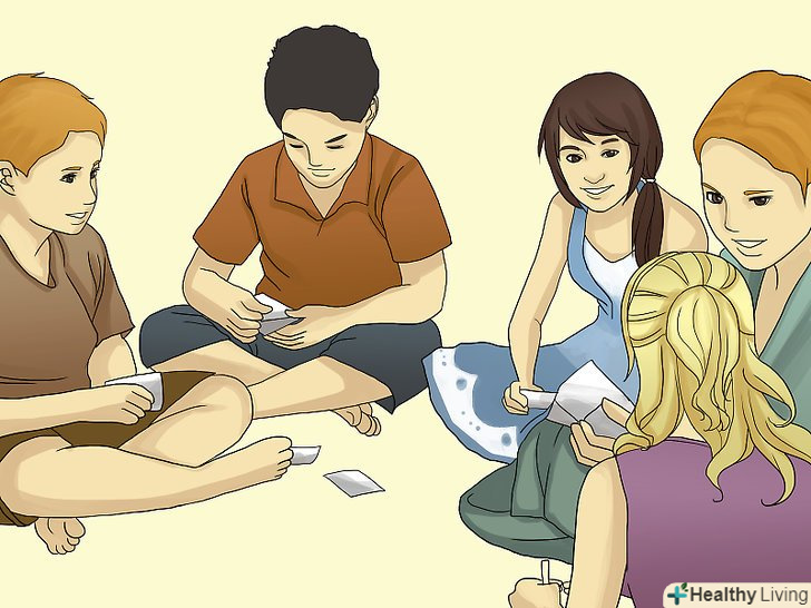 Придумайте історію.Запросіть друзів ваших дітей. Якщо знаєте як, то вам буде легше придумати з великою кількістю дітей. Придумуйте спільно. Дитина починає історію. Наступний продовжує, додавши новий рядок. Наступний додає свою, і так далі.