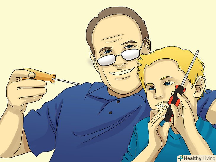 Навчайте дітей предметам, які потрібні для виконання щоденних справ.діти можуть допомагати тримати інструменти, поки ви будете пояснювати їм, що і як ви будете ремонтувати їм. Пізніше, дитина сама зможе допомагати вам по дому (в підлітковому віці).