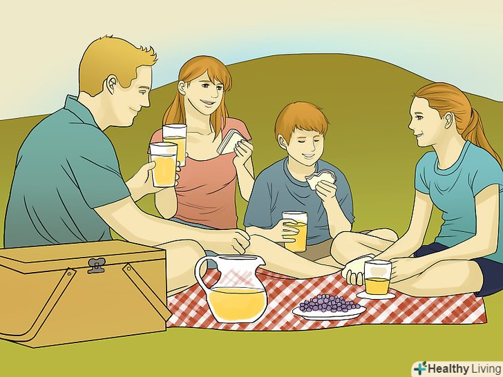Влаштуйте пікнік.всі діти люблять пікніки, Головне правило-зробити це несподівано. Заберіть їх зі школи, візьміть їжу і поведіть дітей в парк, влаштуйте там пікнік на певну тему, наприклад, тільки червона їжа, або дозвольте дітям самим вибрати їжу. І не важливо, що ви будете їсти кашу або бісквіти Twinkies. Це не зашкодить ні вам, ні дітям.