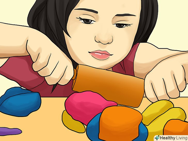Грайте з пластиліном.Дайте дітям кухонні приналежності, якими ви, як правило, не дозволяєте користуватися, і використовуйте пластикові прилади для розрізання пластиліну.