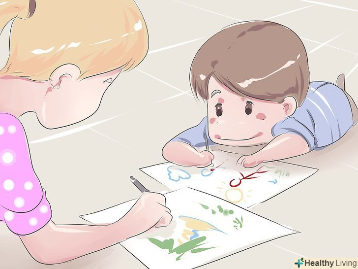 Заохочуйте художню діяльність.надайте дитині папір, кольорові олівці та фарби. Це цікаве заняття для малюка, яке також збільшує тривалість концентрації уваги. Заохочуйте дитину закінчити картину, перш ніж перейти до іншого заняття.- Спочатку краще брати участь в цих заняттях разом з дитиною. Ваша увага може змусити дитину зосередитися на художній діяльності протягом більш тривалого періоду часу. Коли він стане більш зосередженим і уважним, ви можете надати йому свободу дій і спостерігати з боку.