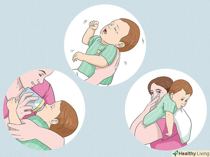 - Іноді дитина плаче тільки через повітря, що скупчився в шлунку і йому просто потрібно відригнути це повітря. Якщо ви поміняли дитині підгузник, погодували його, а він все одно плаче і ніщо не допомагає його заспокоїти, спробуйте допомогти йому відригнути.