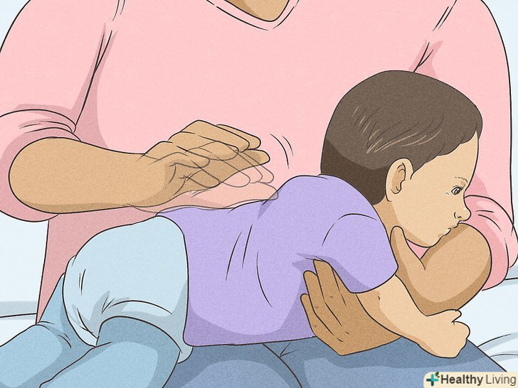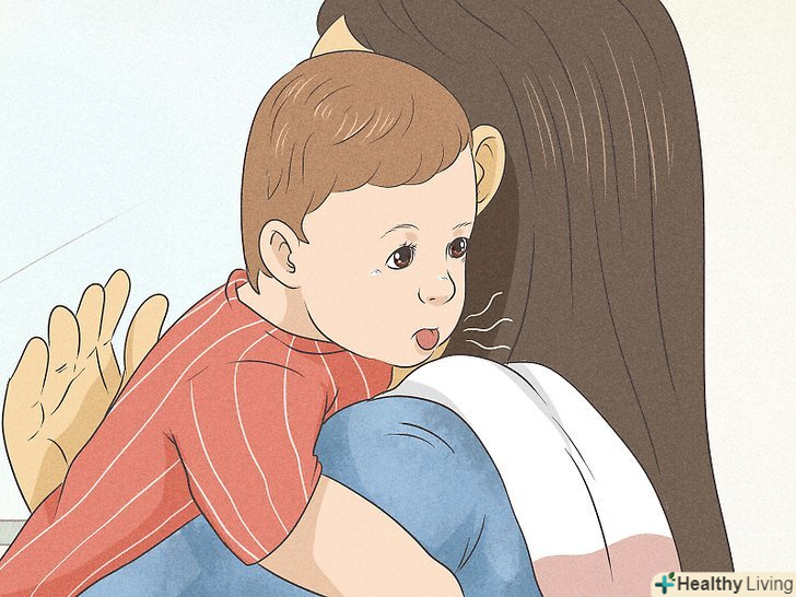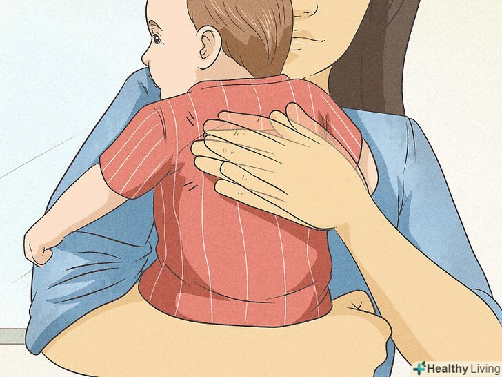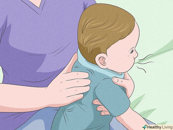 Поплескуйте, погладжуйте або злегка качайте дитини, поки він не відригне.є кілька способів допомогти дитині відригнути повітря, але процес може зайняти кілька хвилин. Ці способи включають в себе:- Поплескування. Поплескуйте дитину дуже ніжно, використовуючи головним чином зап'ясті, а не повну силу руки.
