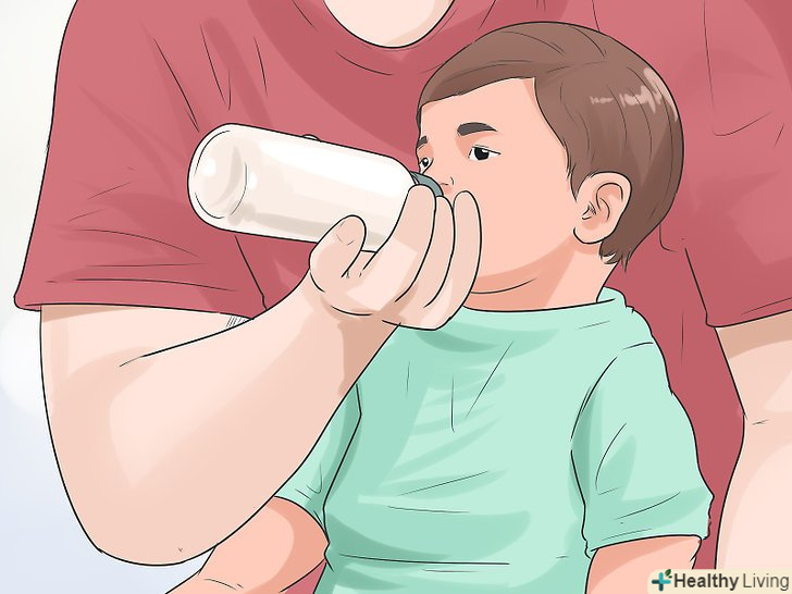 Періодично поплескуйте малюка по спинці під час годування.Так як немовлята багато ковтають під час годування, дуже важливо дозволяти їм відригнути повітря в процесі їжі. Це допоможе позбутися від накопиченого в стравоході повітря. Після відрижки малюк почне краще їсти і буде менш схильний до кольок. Проте, якщо ви бачите, що дитина відчуває себе комфортно і задоволений, просто продовжуйте годування.[6]- Якщо дитина знаходиться на штучному вигодовуванні, дозволяйте йому відригнути після кожних 60-90 мл суміші.