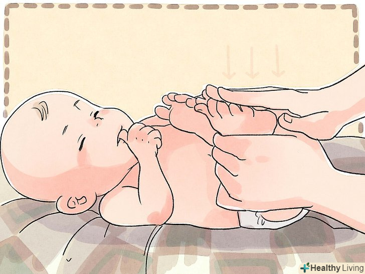 Зробіть масаж.ще один прийом, який ви можете використовувати, це ніжно масажувати тіло вашого малюка. Доторкайтеся до його долонь, подушечок пальців на ногах, плечей, інших частин тіла Ласкаво, щоб дитина заспокоювався вашим люблячим дотиком. Ви можете ніжно робити масаж вашій дитині просто подушечками ваших пальців, щоб полегшити напругу, яку він відчуває.[5]- Просто запам'ятайте, що як і після теплої ванни, деякі діти можуть стати активніше після масажу, так що будьте пильні, зморите як при цьому відчуває себе ваш малюк.