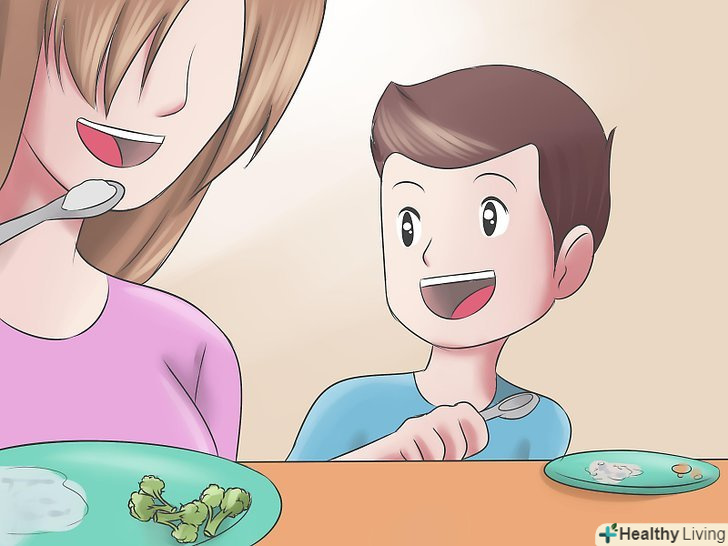 Будьте хорошим прикладом для ваших дітей.діти дивляться на своїх батьків з багатьох причин, в тому числі, щоб побачити, що вони їдять і як вони ставляться до певного типу їжі.- Якщо ви не їсте певний тип їжі або корчите обличчя, в той час як ви їсте те, що вам не подобається, як ви можете очікувати, що ваша дитина буде це їсти? Нехай ваша дитина знає, що правила прийому їжі, поширюються на всіх, а не тільки на нього.