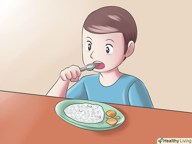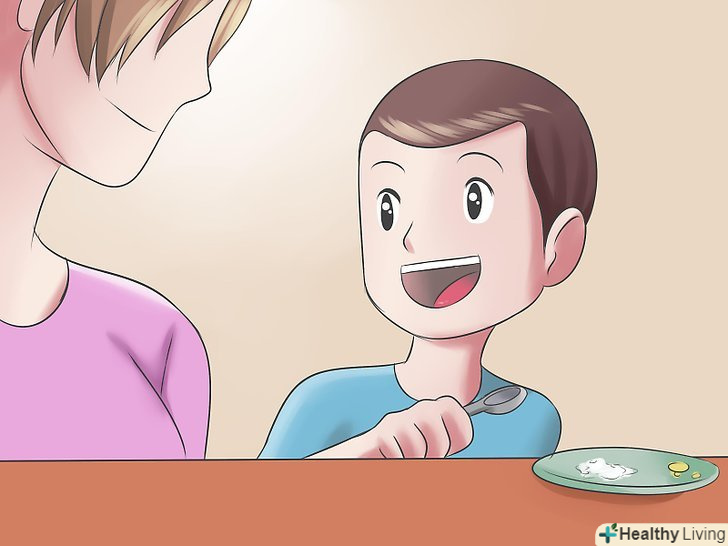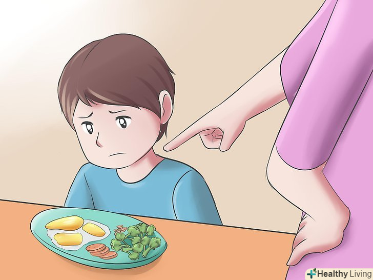 Не карайте дитину, якщо він відмовляється від їжі.не карайте дитину, якщо він відмовляється від певної їжі – це може змусити їх бути ще більш не розташованим до неї.- Замість цього спокійно поясніть дитині, що йому нічого не дадуть поїсти до наступного прийому їжі, і що він буде дуже голодним, якщо нічого не з'їсть зараз.