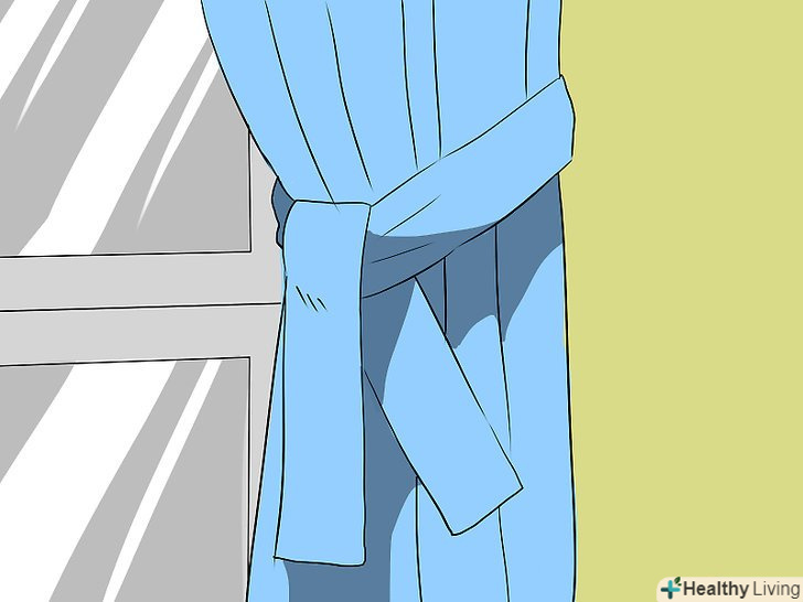 Зв'яжіть широкі штори або тюль, щоб уникнути ризику задушення.найпростіший спосіб-зв'язати тюль в широкий вузол, або замотати шнур навколо тюлі так, щоб дитина не змогла дістати їх.