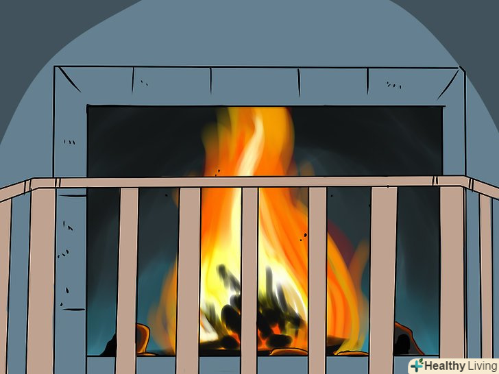 Не дозволяйте, щоб дитина перебувала поруч з каміном.камін-особливо небезпечний предмет, який може нашкодити дитині багатьма способами, але він також дуже приваблює маленьку дитину. Захистіть дитину, встановивши замок. Схожий на замок для духовки, замок для каміна прикріплюється клейкою стрічкою до стіни, таким чином, дитина не зможе відкрити дверцята.- Якщо у вас великий камін або вогнище, встановіть спеціальну загородку, яка закриє доступ до вогню. Ця перегородка, як правило, кріпиться гвинтами або гачками по обидві сторони до стіни.
