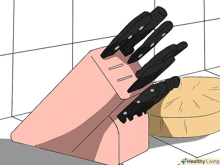 Покладіть небезпечні предмети у верхні шафи.дотримуйтесь надмірну обережність, прибравши небезпечні предмети, наприклад, ножі і важкі страви, в верхні шафи, які не зможе дістати дитина.