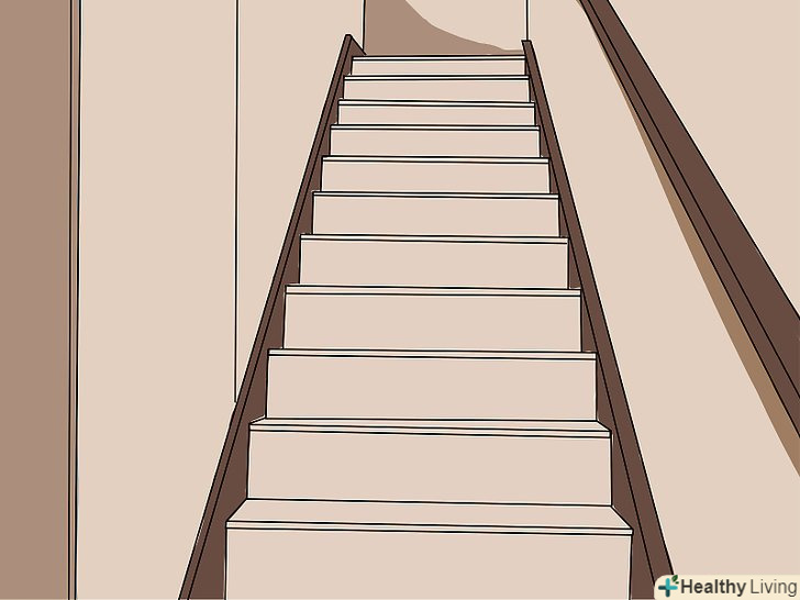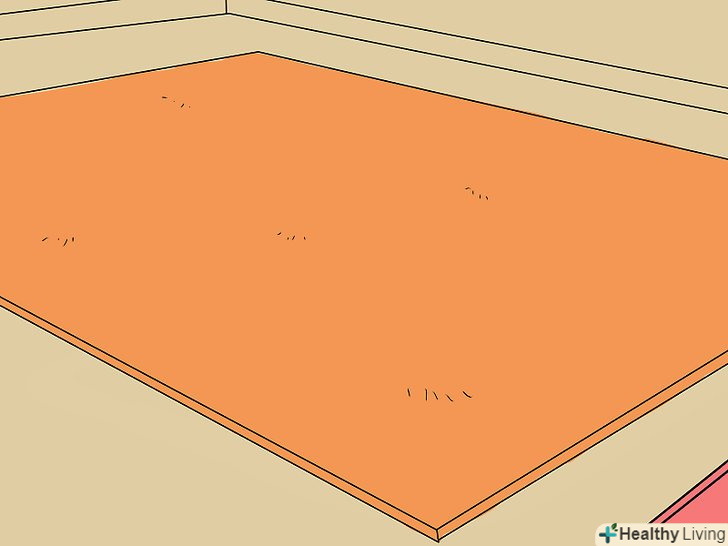Приберіть все з підлоги.Зберіть всі речі, навіть килими і будь-які інші речі, через які дитина може спіткнутися. Нерівності на підлозі можуть стати перешкодою для малюка, тому дивіться за всіма переходами і виїмками на підлозі.- Небезпечні місця можна накрити дутим ігровим матом. Вони бувають різних розмірів і зроблені з квадратиків, так що ви зможете підігнати мат під потрібний вам розмір. Просто застеліть їм підлогу, щоб дитина могла пересуватися, для цього не знадобиться ніяких інструментів або установок.