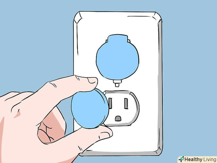 - Вам також потрібно закрити всі доступи до електрики пластиковою кришкою, щоб дитина не змогла залазити руками в розетку. Щоб переконатися, що все закрито, станьте на карачки, щоб подивитися на це з висоти дитини-це допоможе вам побачити потенційні загрози для життя.
