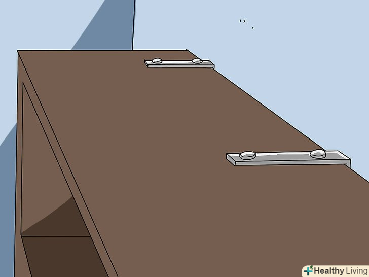 Приберіть велику меблі, яка може легко впасти.пересуньте до стіни великі меблі, наприклад, книжкові полиці або розважальні системи. Такі меблі можуть легко перевернутися, коли дитина буде намагатися залізти на неї.- Прикріпіть її спеціальними гачками, які ви можете знайти в місцевому господарському магазині, або просто використовуйте кілька гачком або гвинтів, і переконайтеся в тому, що меблі надійно прикручена до стіни.
