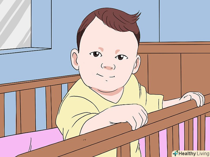 Робіть так, щоб дитина була в безпеці, перебуваючи в своєму ліжечку.тепер, коли ваша дитина може стояти і ходити, він не буде в безпеці навіть у своїй кімнаті. Відрегулюйте ліжечко на найнижче положення, знімаючи матрац і поправляючи Нижні пружини, таким чином, дитина не зможе вийти вночі з ліжечка.- Переставте ліжечко від небезпечних предметів, таких як вікна та двері, або місця, звідки дитина може впасти
