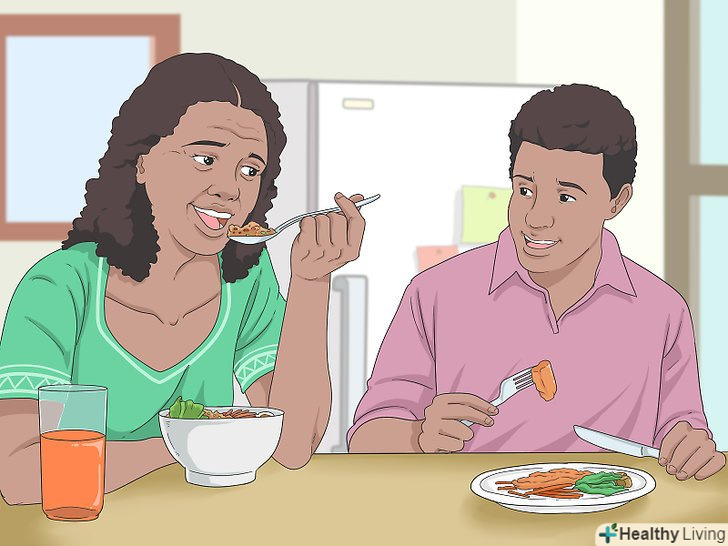 Вибирайте відповідний час для розмови.якщо ви хочете спілкуватися з підлітком, вибирайте відповідний час. Підходьте до дитини, коли він розслаблений і сприйнятливий. Дбайте про те, щоб у вашому домі була невимушена атмосфера, і дитина була відкрита до спілкування з вами.[15]- Методом проб і помилок з'ясуйте, коли ваш син відкритий для спілкування з вами. Ваш син може бути неговірливим, коли ви забираєте його з занять спортом, і відкритий до спілкування після обіду. Вибирайте час, коли він готовий до спілкування з вами.