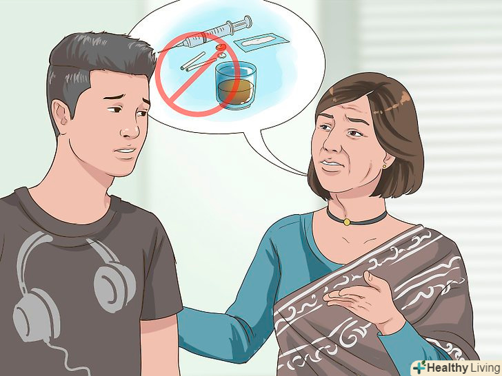 Слідкуйте за тим, щоб поведінка вашого сина не було безрозсудним.Підлітковий мозок знаходиться на стадії формування. Вам слід розуміти, що підліток ще не до кінця розуміє наслідки його неправильної поведінки. Тому він може вести себе необдумано. Ви повинні бути впевнені, що підліток не приймає наркотики і алкоголь.[9]- Не варто виправдовувати погану поведінку підлітка тим, що його особистість ще формується. Не дозволяйте йому вести себе безрозсудно. Навчіть його приймати правильні рішення, пам'ятаючи про наслідки.
