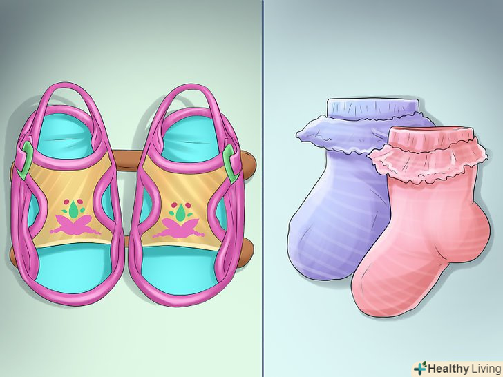 Також купіть кілька пар шкарпеток і шапочок, щоб одягати на малюка, коли він знаходиться вдома.навіть в теплі дні крихітні ніжки дитини можуть замерзнути, так як у немовлят ще недостатньо розвинена циркуляція крові.- Коли на дитині не повзунки, а просто штанці, то на ніжки можна надіти пару шкарпеток для тепла, замість ковдри або пелюшки.