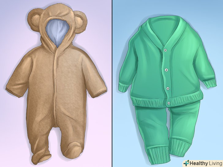 Одягайте дитину так, щоб йому було тепло і без ковдри.не рекомендується накривати немовлят ковдрою, оскільки ковдра являє собою загрозу удушення, а також є ризик виникнення синдрому раптової смерті немовляти. Плюс до всього, під час сну дитина може скинути з себе теплу ковдру і замерзнути. Одягніть на малюка теплі речі в кілька шарів, щоб можна було зняти щось в разі, якщо дитині стане жарко.