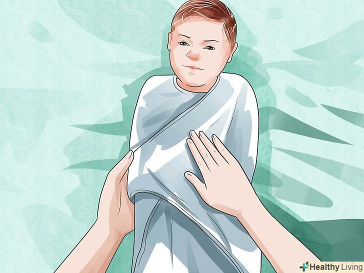 Спробуйте сповити дитину спеціальним пеленальним простирадлом на час сну. Принцип сповивання такий же, як при пелюшках: сповивається все тіло, крім голови, а ручки притискаються щільно до тіла дитини. Ці спеціальні простирадла також комфортні, як і пелюшки, але без ризику використання пелюшок під час сну. Вони допомагають малюкові заспокоїтися і заснути, а також ви зможете бути впевнені, що немовля спить на спині. Потрібно сповити все тіло, крім головки, і тоді малюкові буде дуже комфортно і тепло спати.