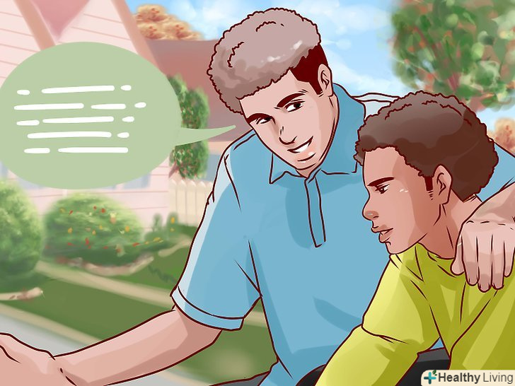 Допоможіть підлітку знайти надійних людей.важливо, щоб дитина довіряла вам. При цьому йому не завадять і інші джерела підтримки. Відрадно, коли можна обговорити ситуацію з різними людьми.[13]- Спробуйте задіяти свого чоловіка. Поясніть, що підлітку потрібна його підтримка.