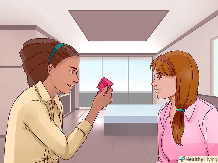 Надайте засоби контрацепції.простежте, щоб у підлітка були в наявності засоби контрацепції. В такому випадку ви переконаєтеся, що ваша дитина практикує безпечний секс. Важливо проявити турботу про безпеку підлітка, навіть якщо ви не згодні з його рішенням почати статеве життя.[8]- Давайте підлітку презервативи. У людини будь-якої статі, що веде статеве життя, повинні бути в наявності презервативи.